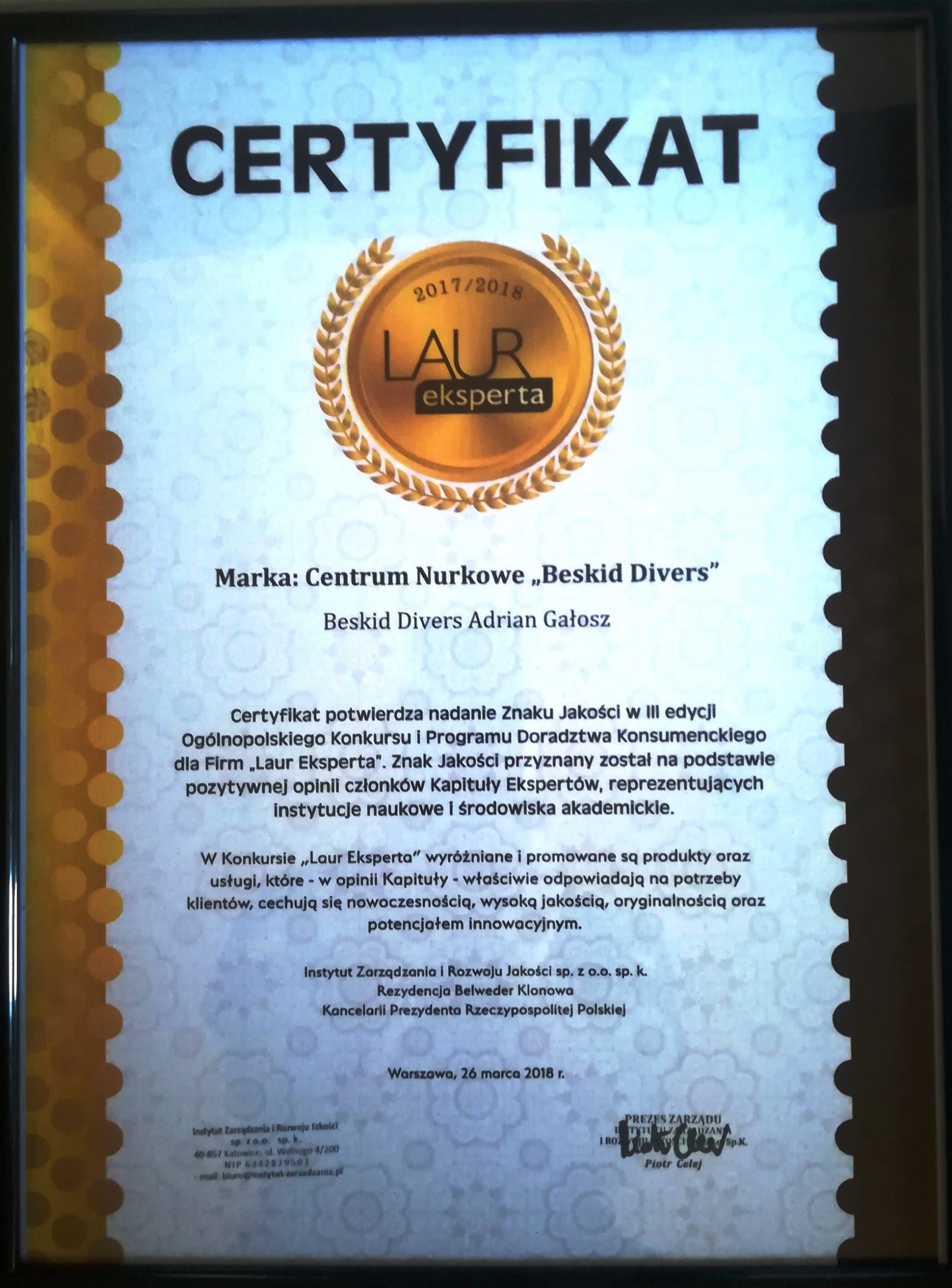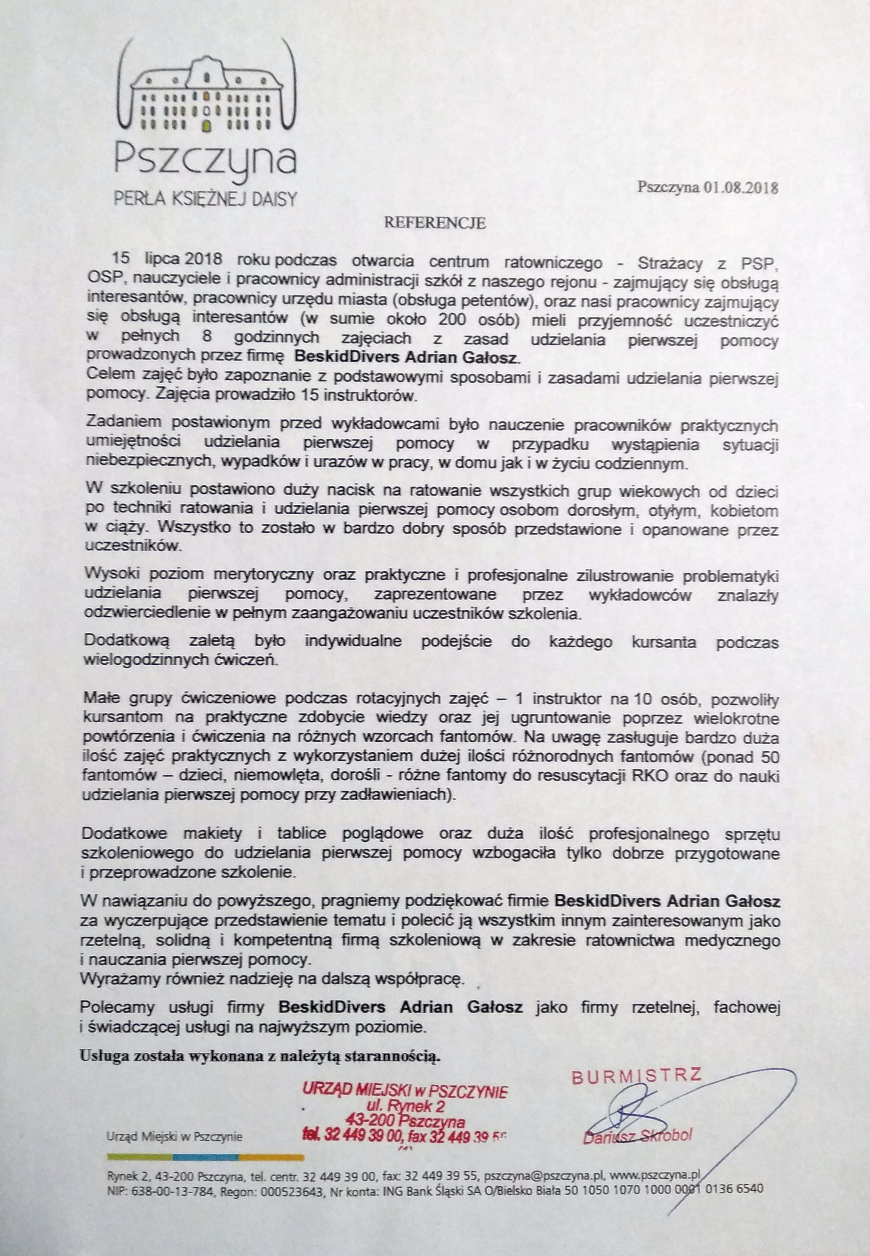 Referencje centrum nurkowego BeskidDivers Bielsko – Biała
