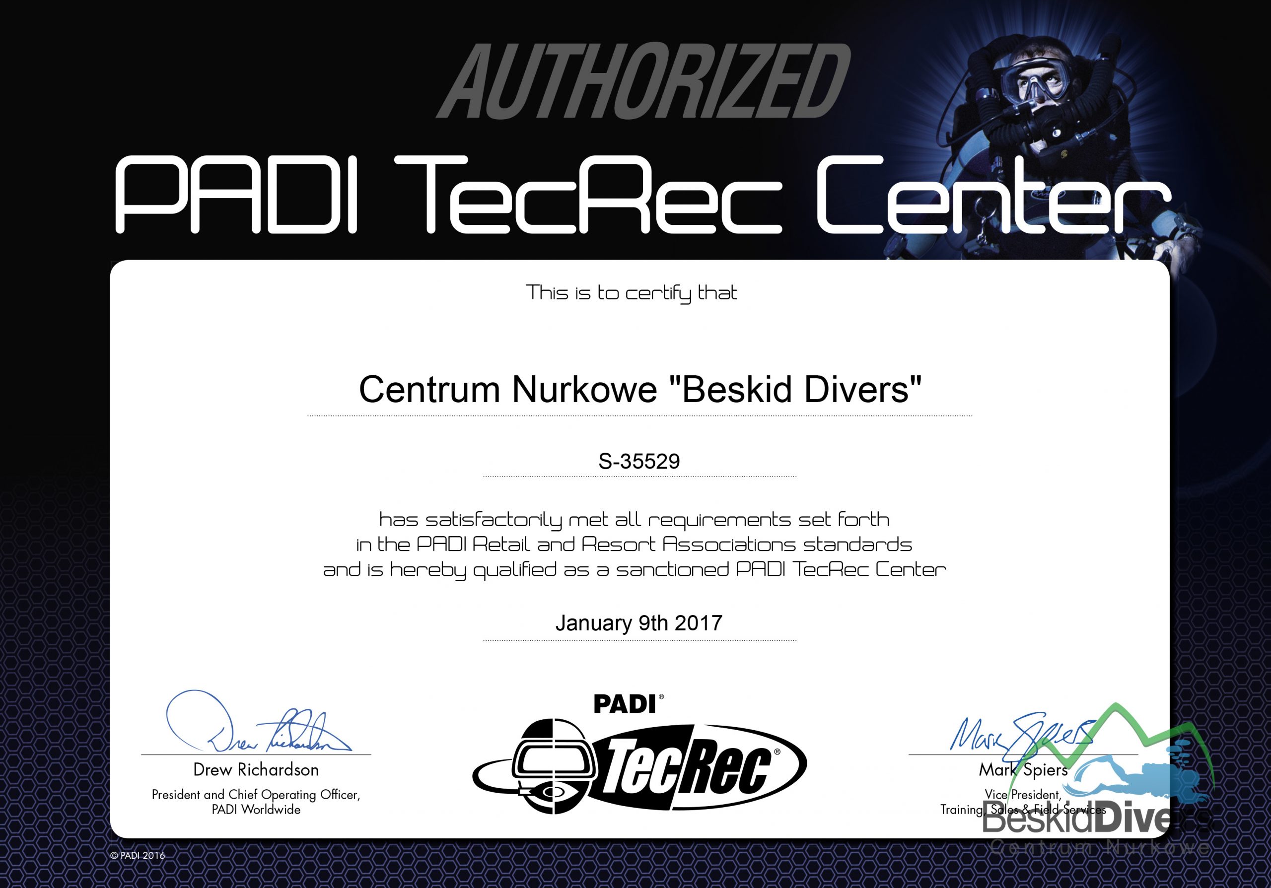 Beskid Divers to jedyne centrum IANTD NA POŁUDNIU POLSKI, autoryzowane 5-cio gwiazdkowe centrum PADI oraz PADI TecRec, biznes partner DAN, Emergency First Response Center.